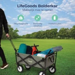 LifeGoods Bolderkar – Opvouwbaar – Tot 80KG – 94L – Wasbaar Polyester – 98x45cm – Zwart/Grijs