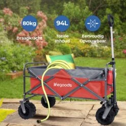 LifeGoods Bolderkar – Opvouwbaar – Tot 80KG – 94L – Wasbaar Polyester – 98x45cm – Rood/Grijs