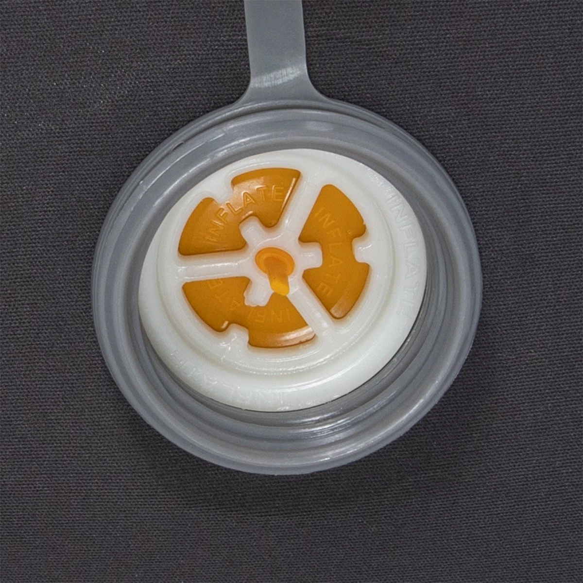 Deze mat heeft één groot ventiel waarmee je de mat zowel opblaast als leeg laat lopen. Het ventiel heeft 3 standen: Open, inflate (om bij te blazen, met het oranje gedeelte aan de binnenkant) of deflate (met het oranje gedeelte aan de buitenkant). Je draait ‘m gemakkelijk met je vinger naar de gewenste stand.
