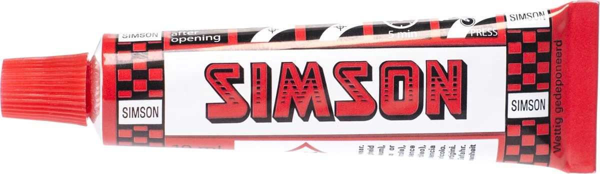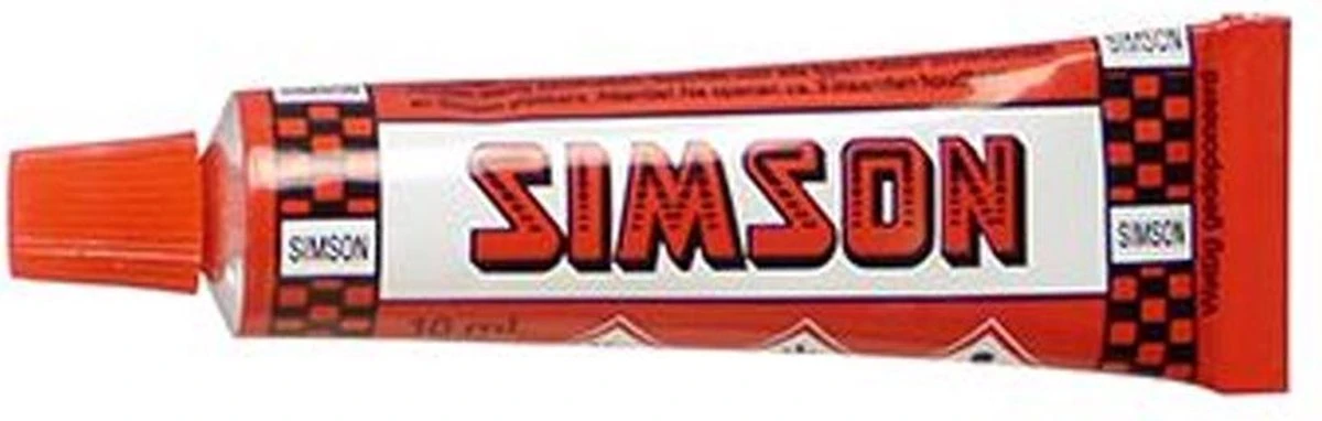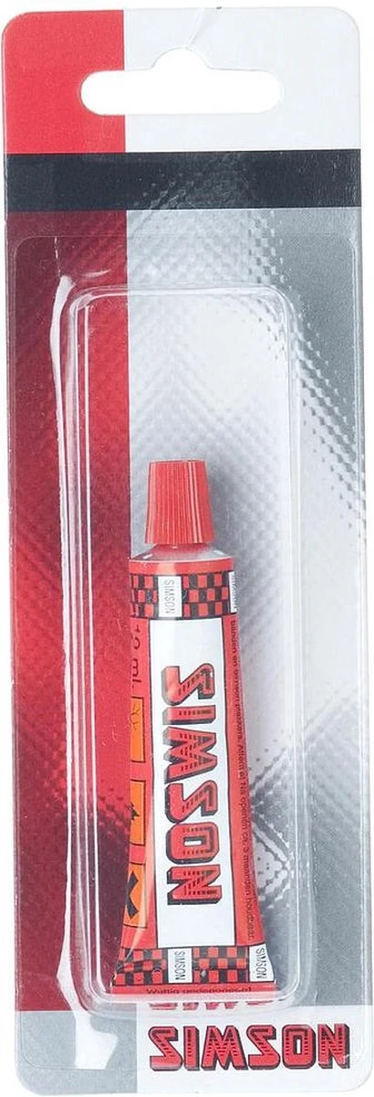 - Knijptube van Simson met lijm speciaal voor het plakken van banden